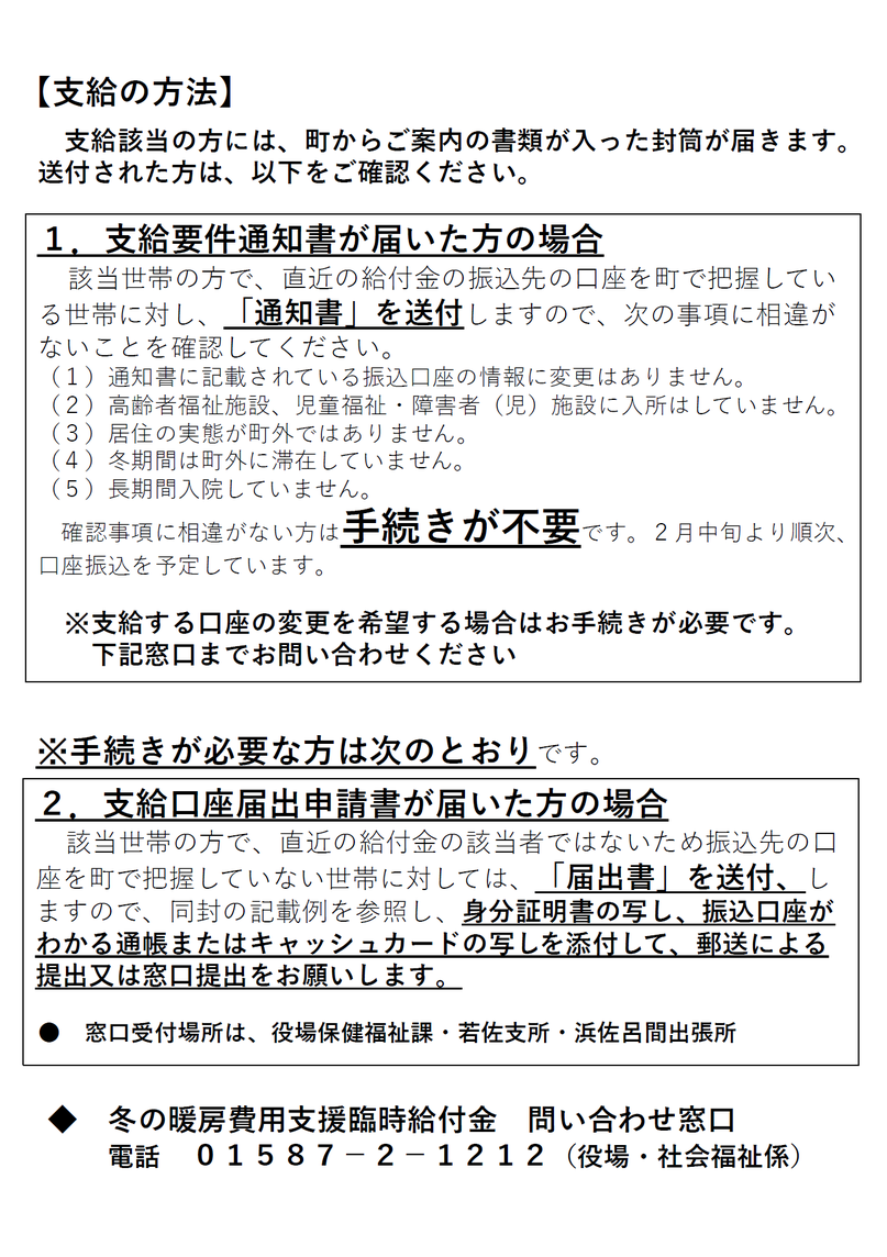 > 令和7年度佐呂間町冬の暖房費用支援臨時給付金のお知らせ