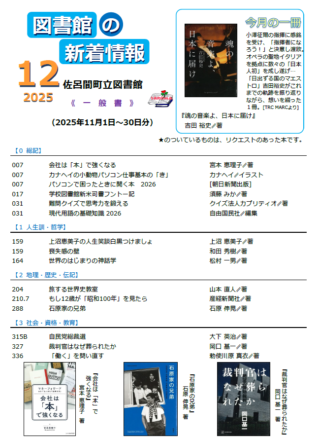 図書館の新着情報(一般書) 2025年12月号