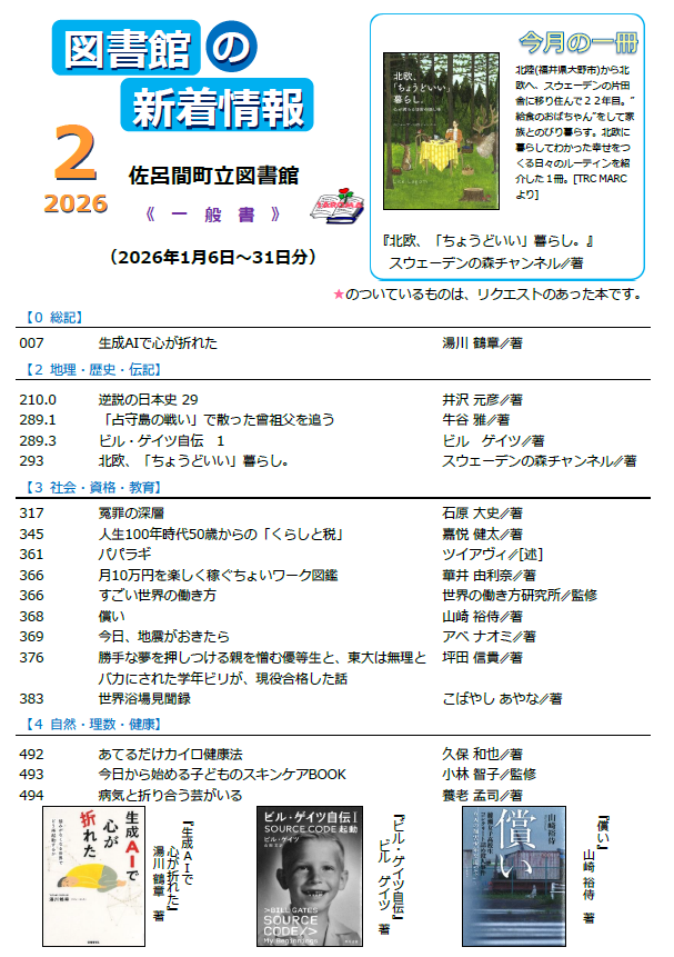 図書館の新着情報(一般書) 2026年2月号