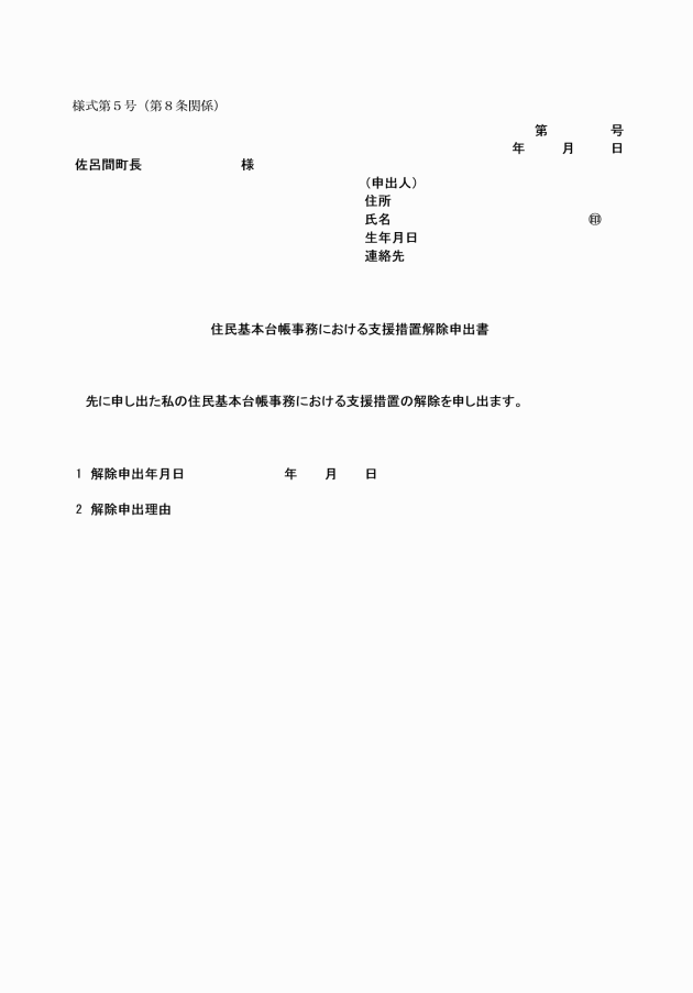 第3条 支援措置を受けようとする対象者(以下「申出者」という。)は、住民基本台帳事務における支援措置申出書(様式第1号。以下「申出書」という。)によりその旨を町長に申し出るものとする。