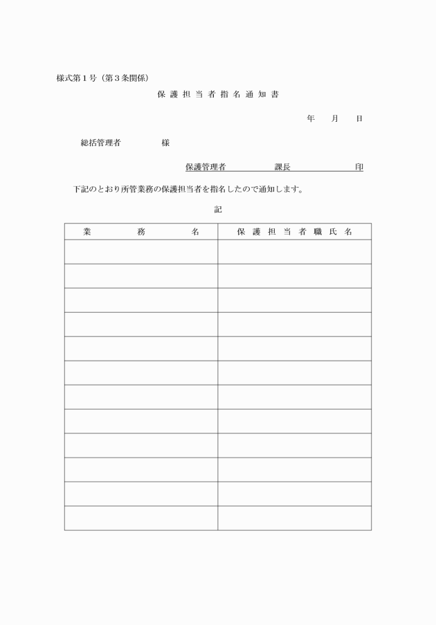 4 保護管理者は、直接電子計算機を操作する者並びにその業務の一部を処理させるため、データ保護担当者(以下「保護担当者」という。)を指名し、保護担当者指名通知書(様式第1号)を総括管理者に提出する。