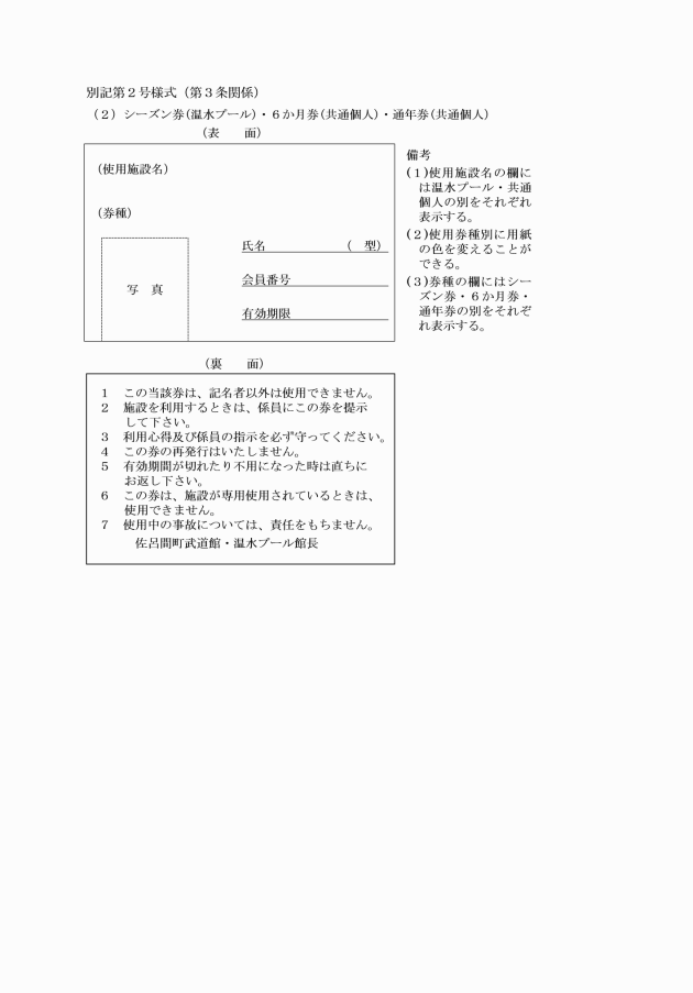 2 6か月券及び通年券、シーズン券を購入した者は、施設利用の際、当該券を係員に提示しなければならない。
