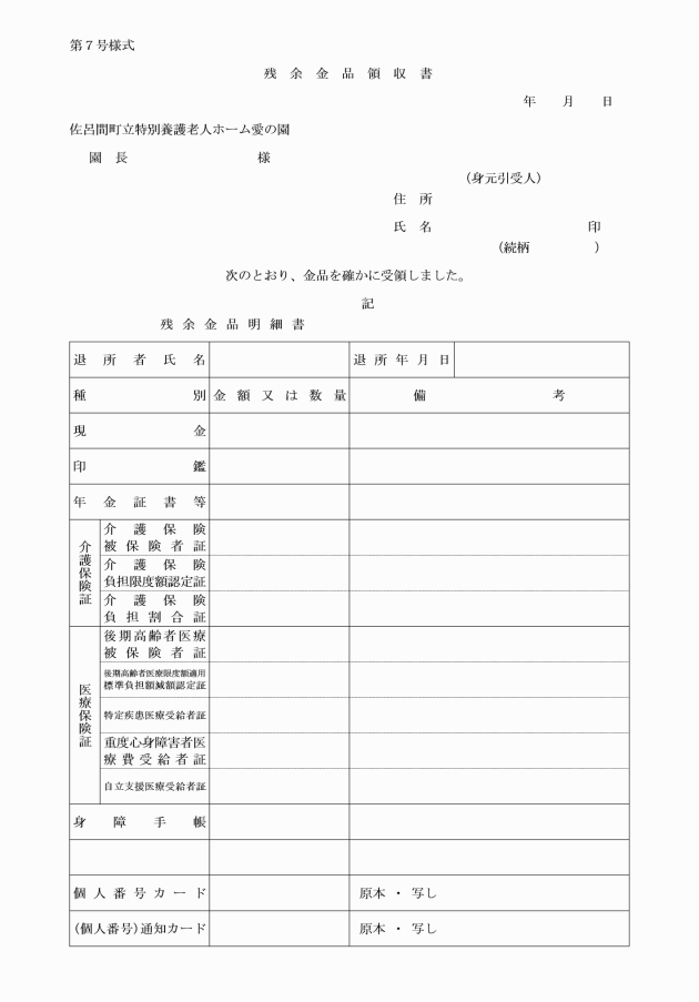 (3) 現金、預金通帳、印鑑、医療保険被保険者証、介護保険被保険者証等を預かった場合は、預り証(第2号様式)を交付するものとする。