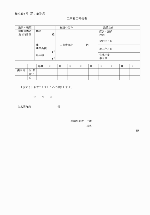 (1) 工事着工報告書(様式第5号) 工事着手の日から7日以内