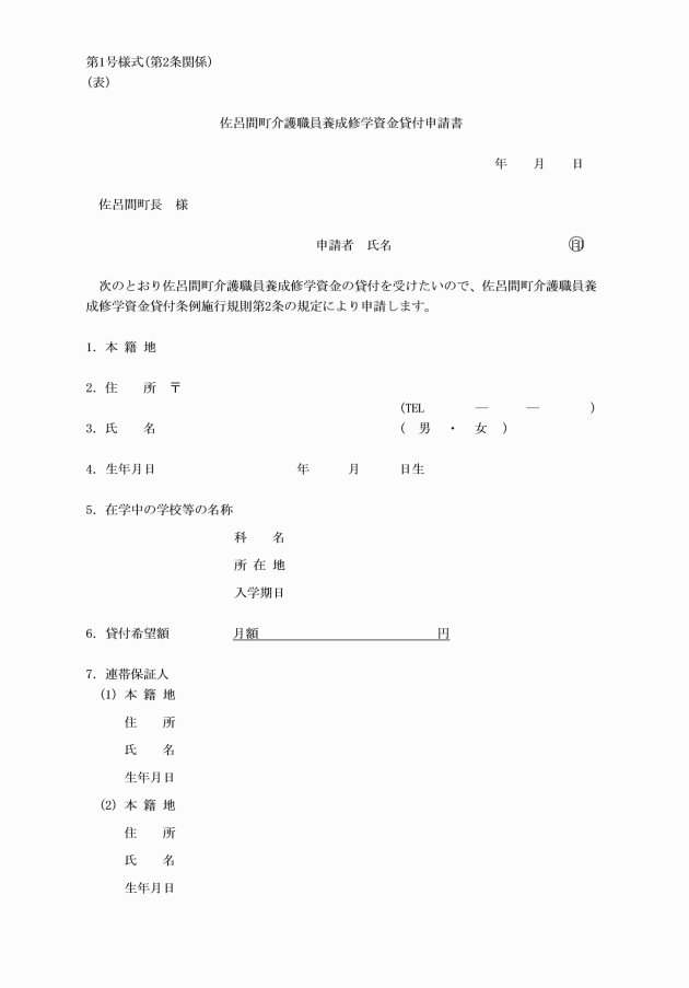 ○佐呂間町介護職員養成修学資金貸付条例施行規則