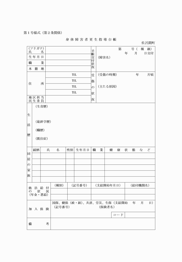 第2条 町長は、身体障害者更生指導台帳(第1号様式)を備え、必要な事項を記載しなければならない。