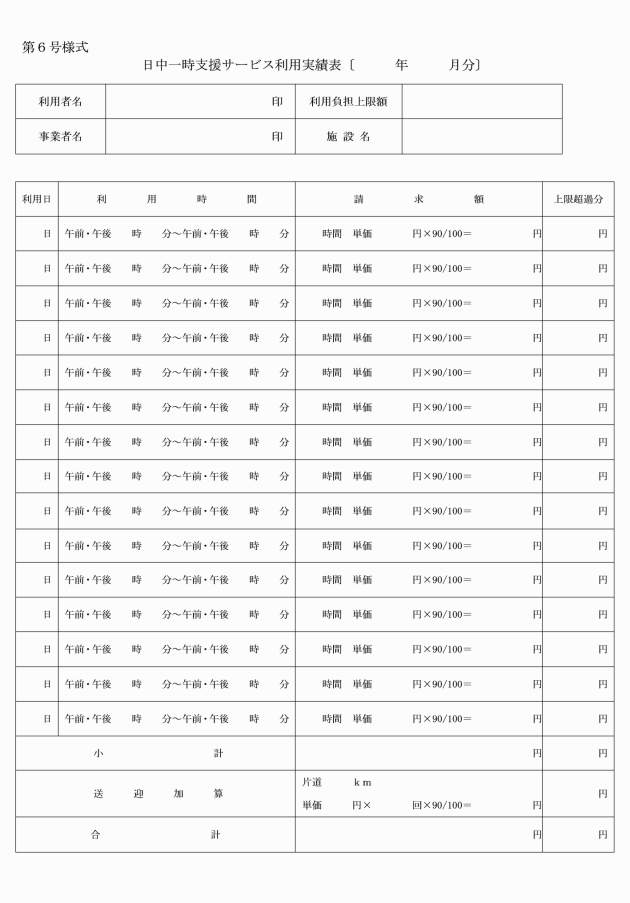第9条 利用者は、日中一時支援サービスを利用した翌月の月の10日までに、日中一時支援サービス利用実績表(第6号様式。以下「実績表」という。)を町長に提出するものとする。