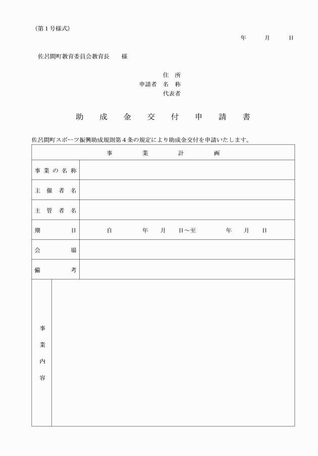 第1条 この要綱は、佐呂間町スポーツ振興助成規則(平成4年教育委員会規則第3号。以下「規則」という。)の施行に関して必要な事項を定めることを目的とする。