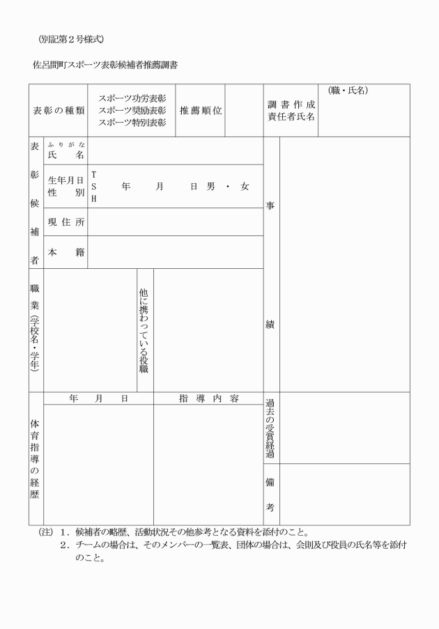 第3条 規則第4条によるスポーツ功労賞の推薦基準及び表彰審査は次のとおりとする。