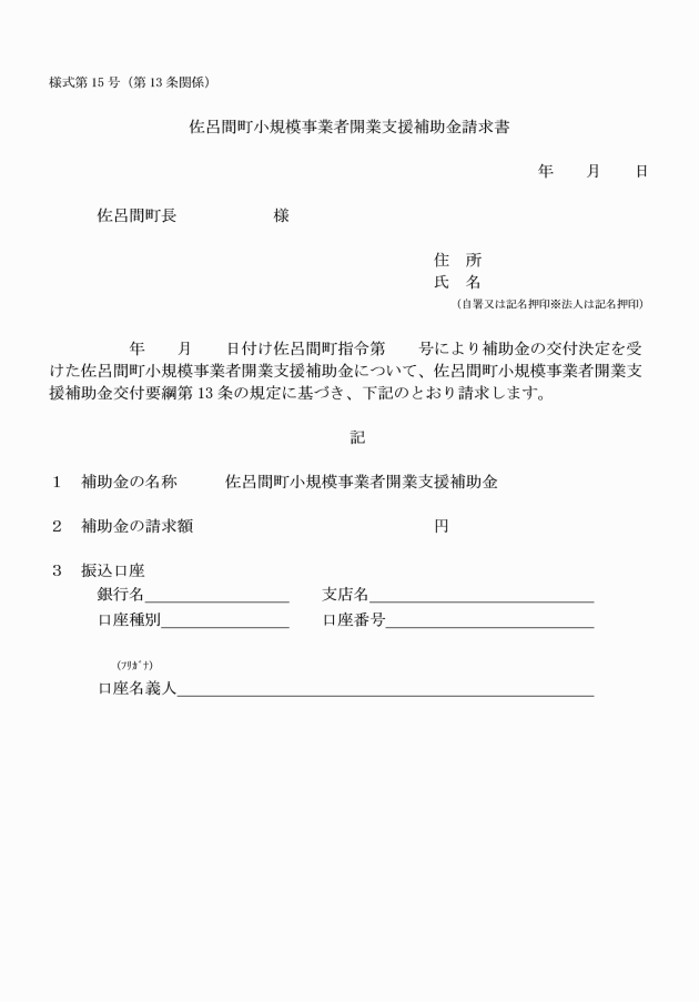 2 概算払を受けようとする支援事業者は、小規模事業者開業支援補助金概算払申請書(様式第14号)により、町長に提出しなければならない。