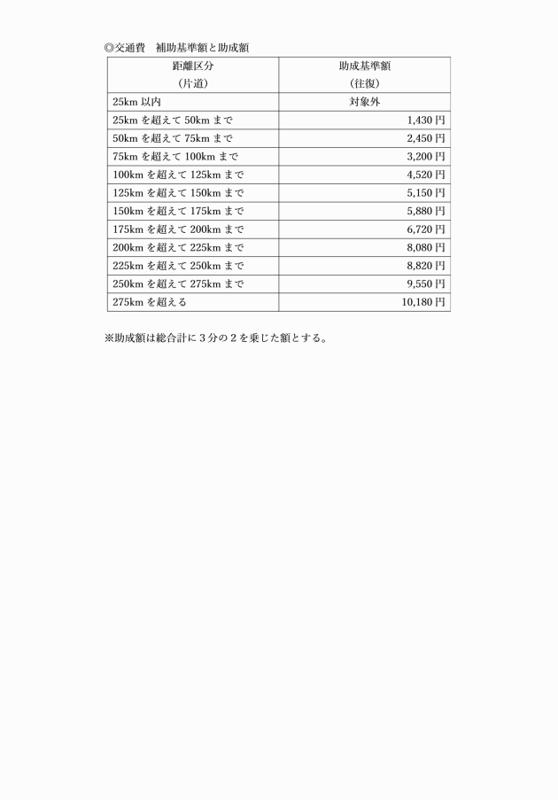 (2) 交通費 前条の対象者が、医療機関(住民登録のある自宅から医療機関まで片道25kmを超える場合に限る。)において、先進不妊治療を受診するときに要した交通費