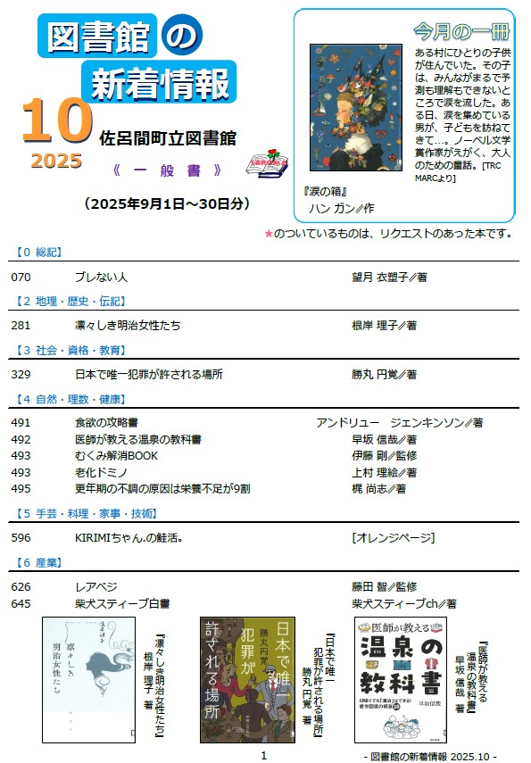 図書館の新着情報(PDF形式ファイル)を月1回配布しています。
